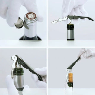 Sacacorchos Profesional 2 Tiempos: Sacacorchos, Destapador y Cortador 12 cm Acero Inoxidable Color Negro/Plateado