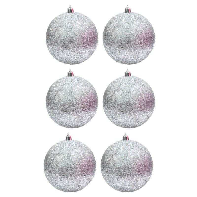 Bambalinas De Navidad 6 Piezas Color Plata Escarchada 8 Cm, En Caja de Acetato, Material Plástico
