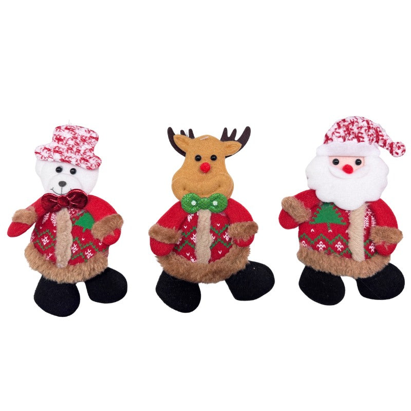 Adorno Colgante Navideño De Felpa Santa, Reno Muñeco de Nieve Color Rojo/Marron 20 Cm