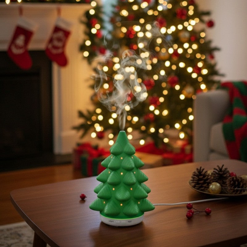 El difusor ultrasónico LED diseño árbol de Navidad cuenta con un gran depósito de 160 ML con dos modos de nebulización: continua durante 4 horas e intermitente durante 8 horas. Ofrece 7 colores de luz LED y una exclusiva cubierta extraíble para árbol de Navidad, combinando aromaterapia durante todo el año con un estilo navideño. No necesita pilas, lo que lo hace fácil de usar y perfecto para cualquier espacio profesional o doméstico.