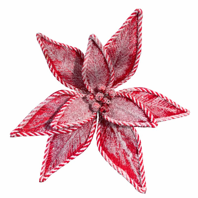 Flor De Navidad Velvet Nevada Diametro 33Cm. Tallo 40Cm Color Rojo Material: Tela Velvet