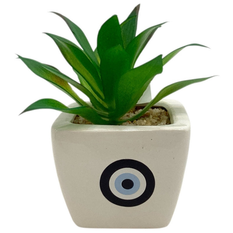 Mini Planta Artificial Base Blanca De Cerámica 14 Cm