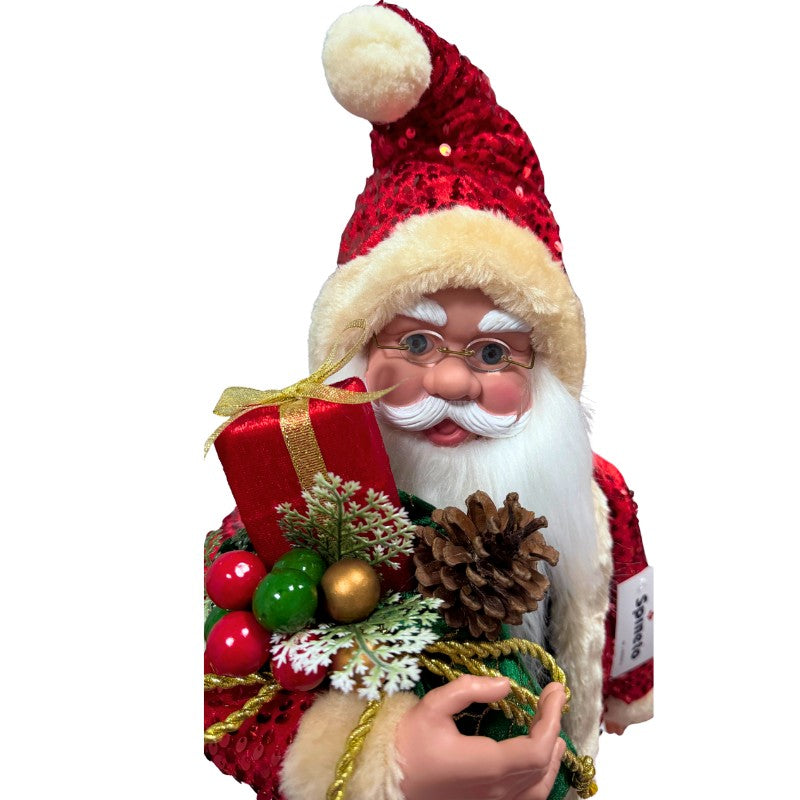 Santa Claus Musical A Cuerdas Con Regalos 72 Cm, Color Rojo y Beige